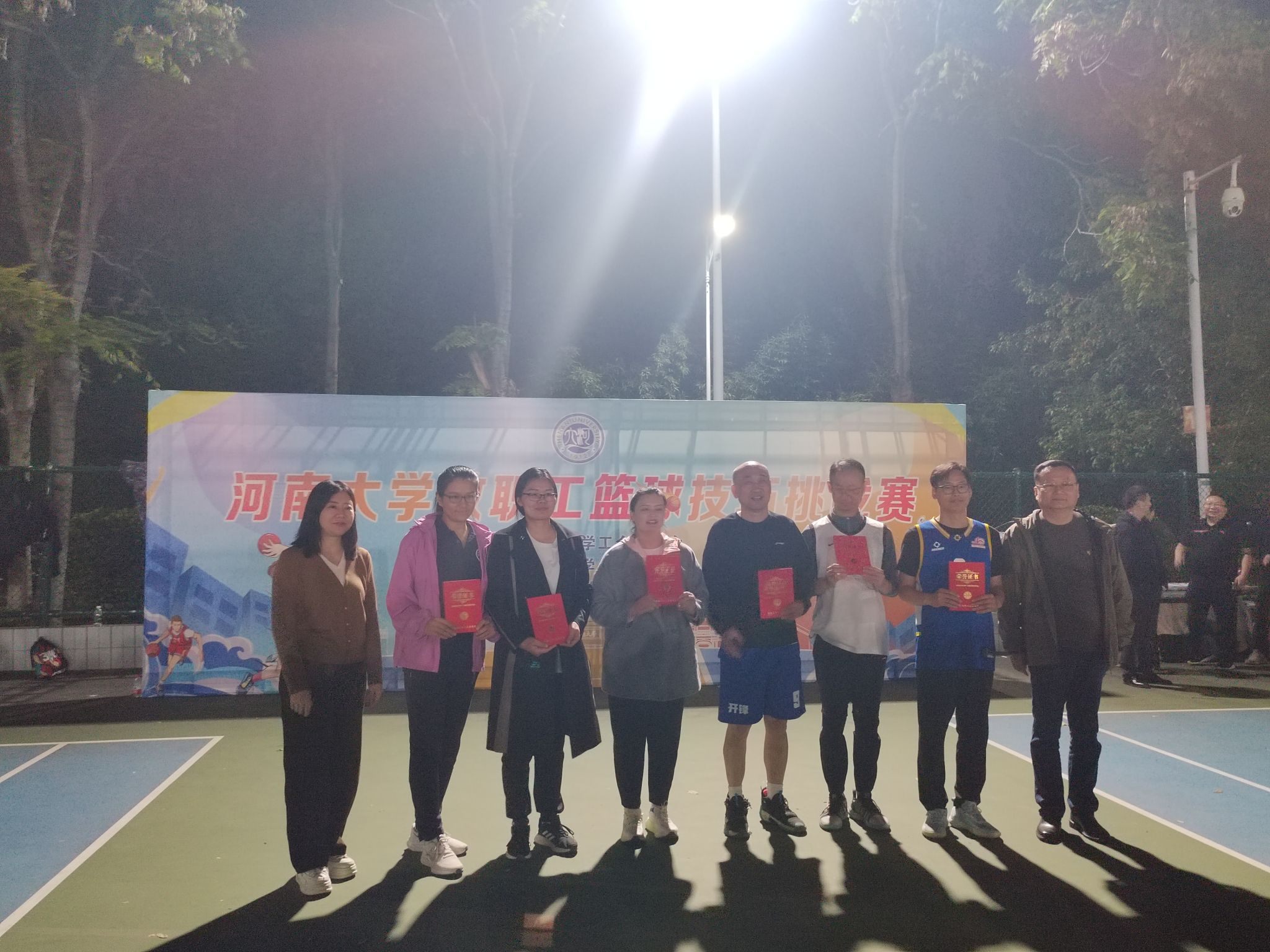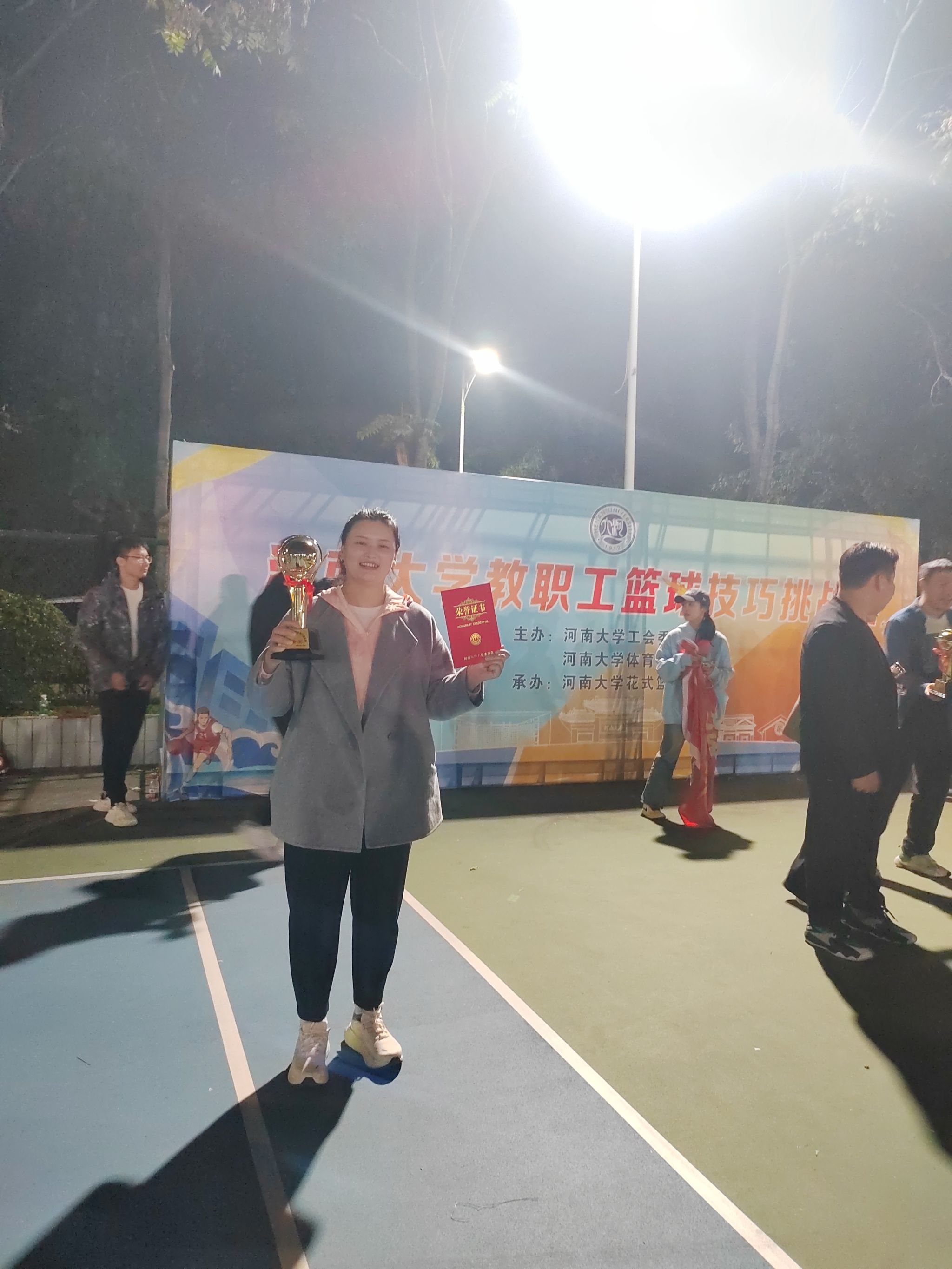 碧空如洗映赛场,激情似火燃河大。河南大学2024年度教职工篮球技巧挑战赛圆满落幕,生命科学学院两支代表队参赛,分别在个人和团体项目中取得显著成绩。其中,学院代表队以出色的团队协作和篮球技巧荣获团体二等奖,青年教师刘馨荣获女子个人赛一等奖。