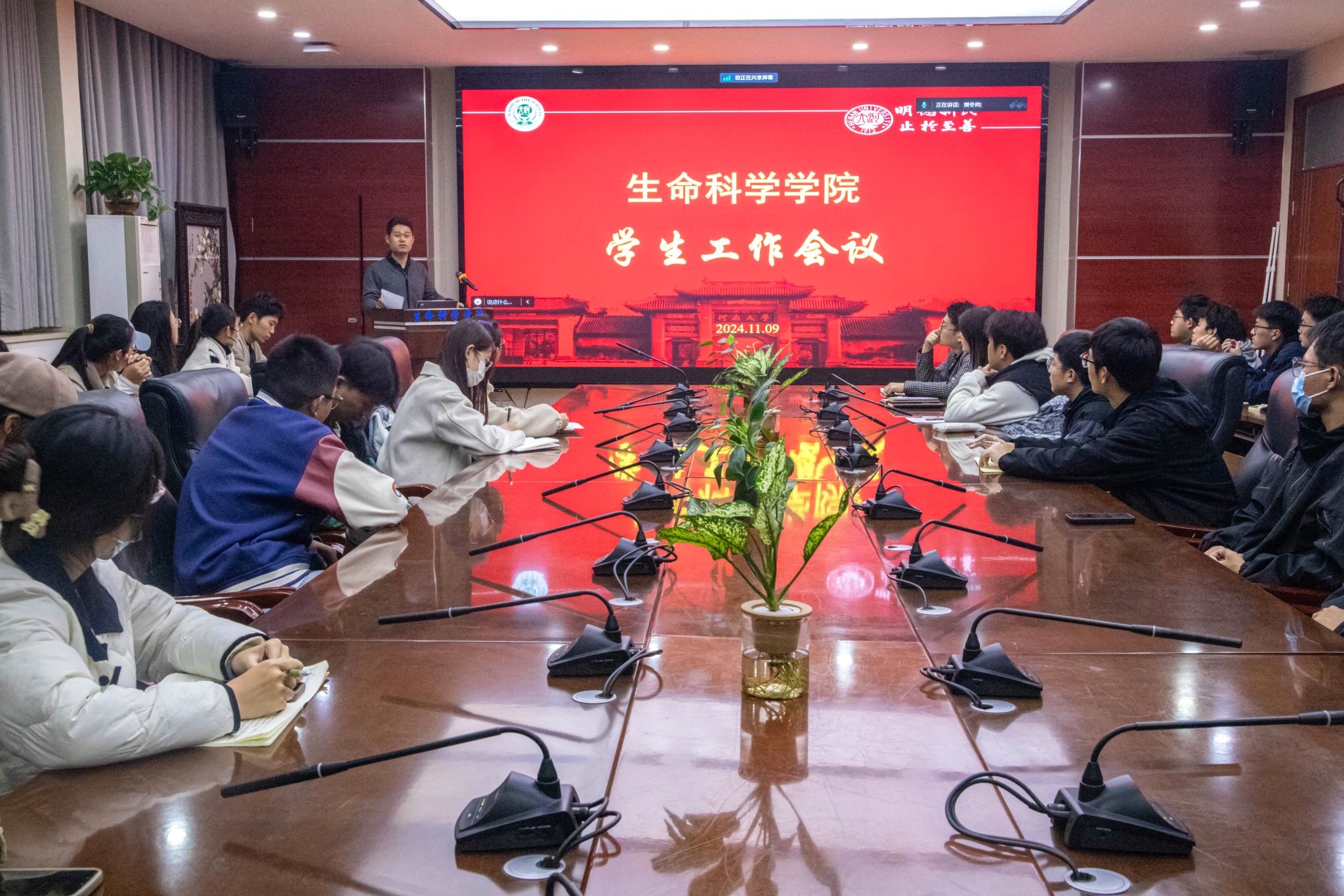 11月9日,生命科学学院在B201会议室召开学生工作会议。学院党委副书记宋永鹏、辅导员以及学生会组织、本硕博主要学生干部、学生骨干参加会议。会议由宋永鹏主持。