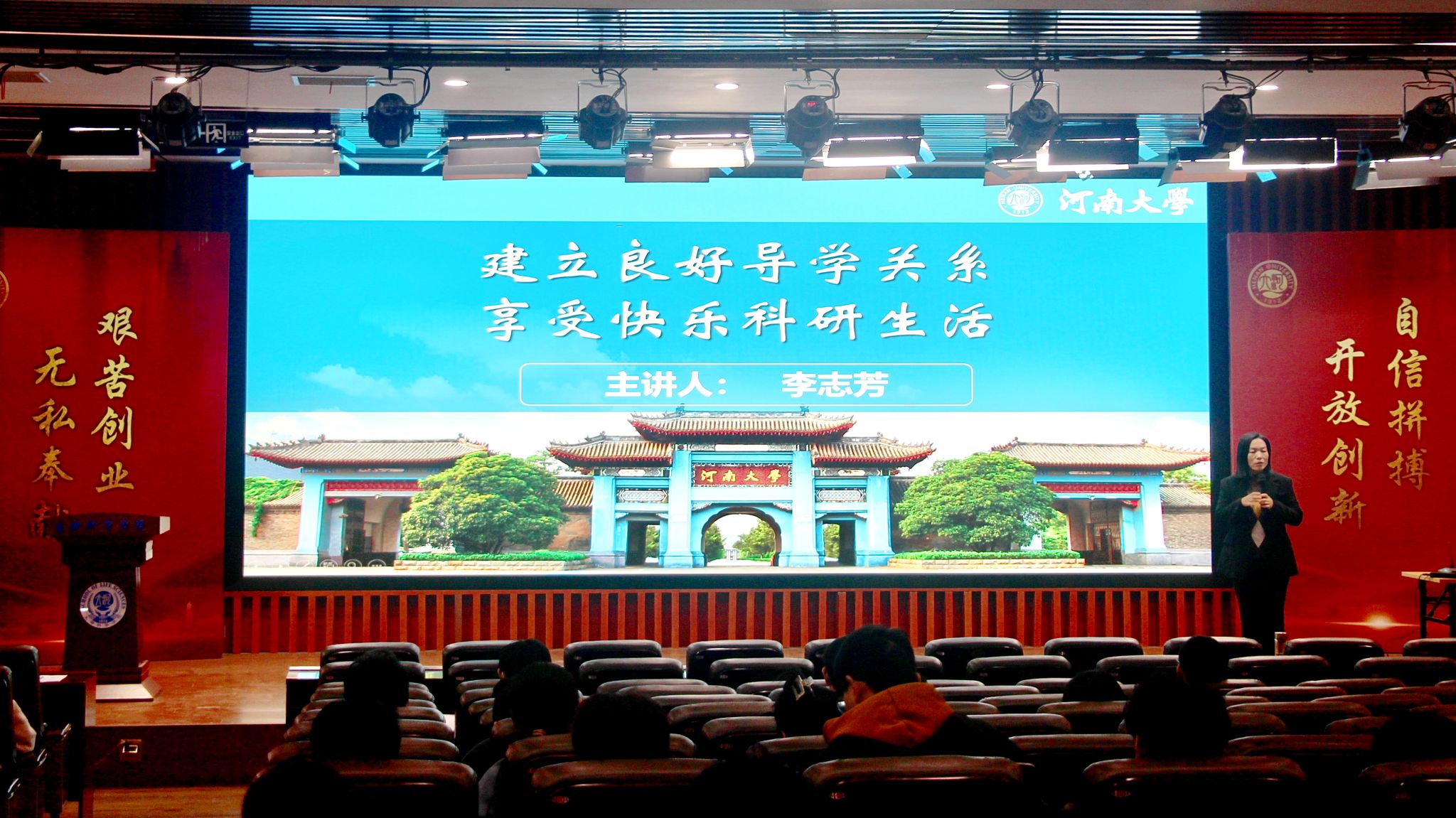 11月12日下午,我院2024级研究生综合素质教育讲座在生命科学学院圆形报告厅举行。本次讲座由课程负责人李志芳担任主讲,开展《建立良好导学关系,享受快乐科研生活》主题讲座。