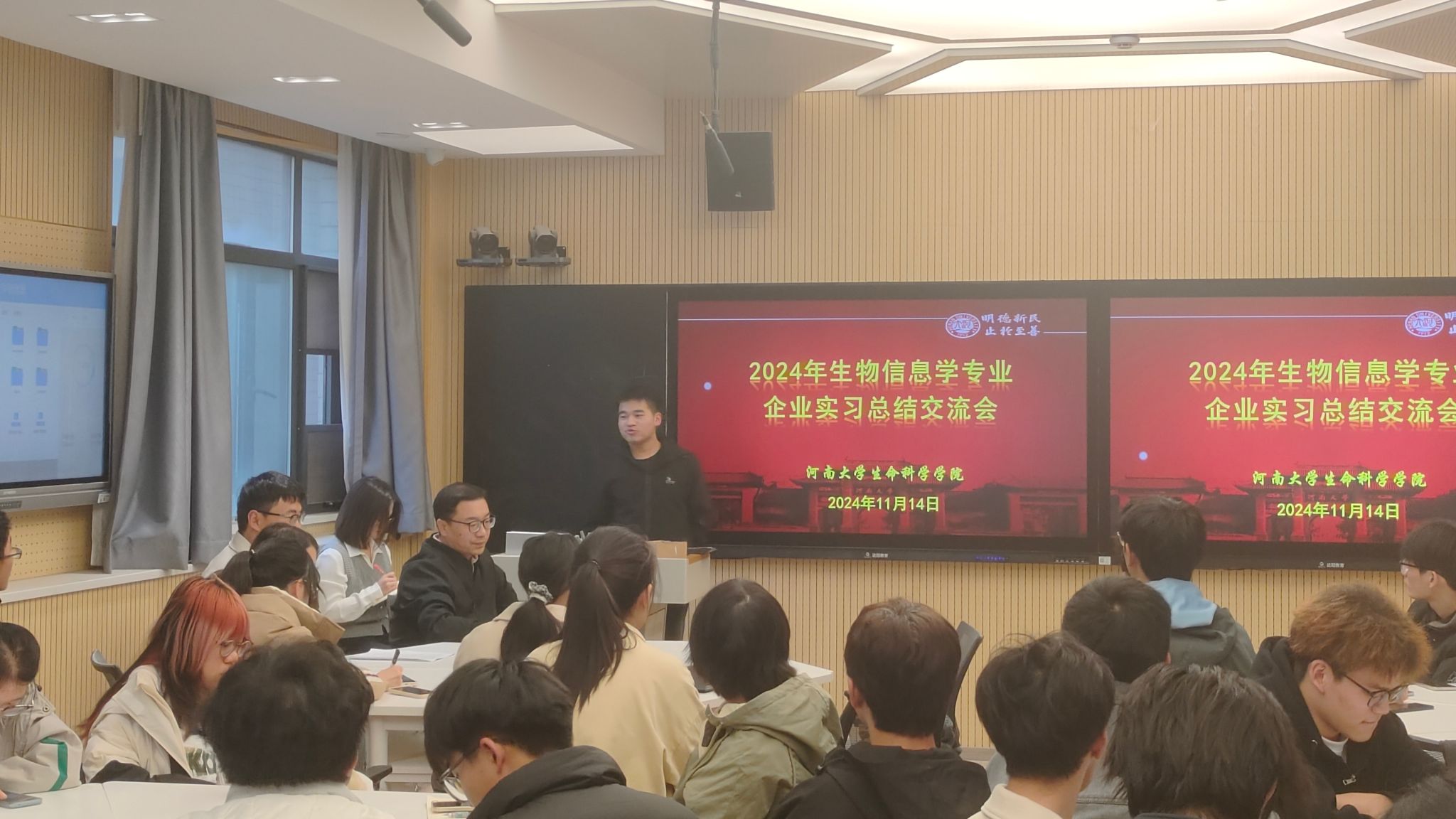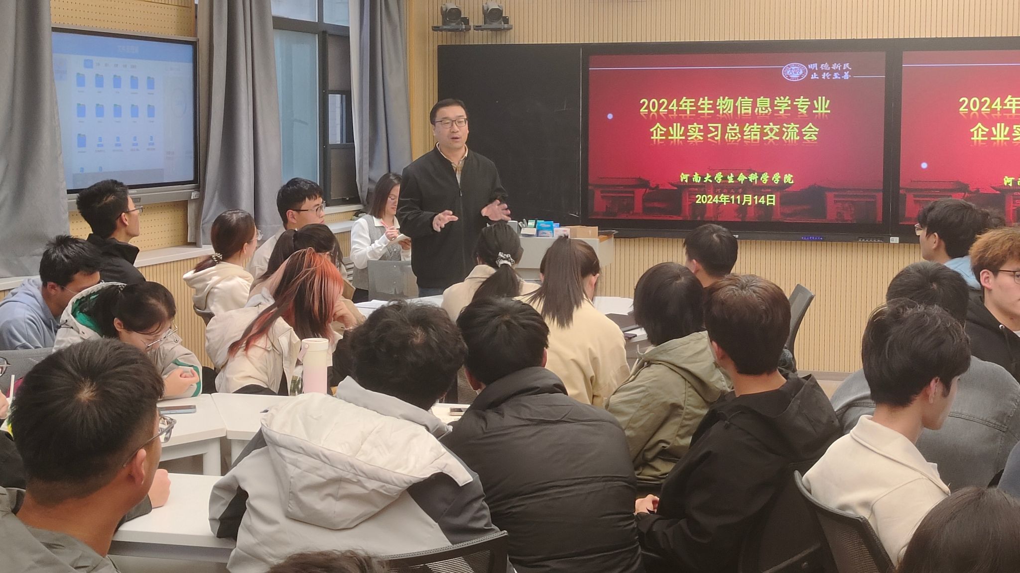 为进一步提升生物信息学专业大学生实践能力,近日,学院组织生物信息学专业大学生深入企业一线参与实践工作,经过为期9天的实习实践,生命科学学院在A305智慧教室举行生物信息学专业企业实习总结交流会。学院实习工作组成员、植物科学与技术系主任高安礼,指导教师高巍、吴海刚以及生物信息学专业学生参与交流。会议由企业实习负责人石艳云主持。