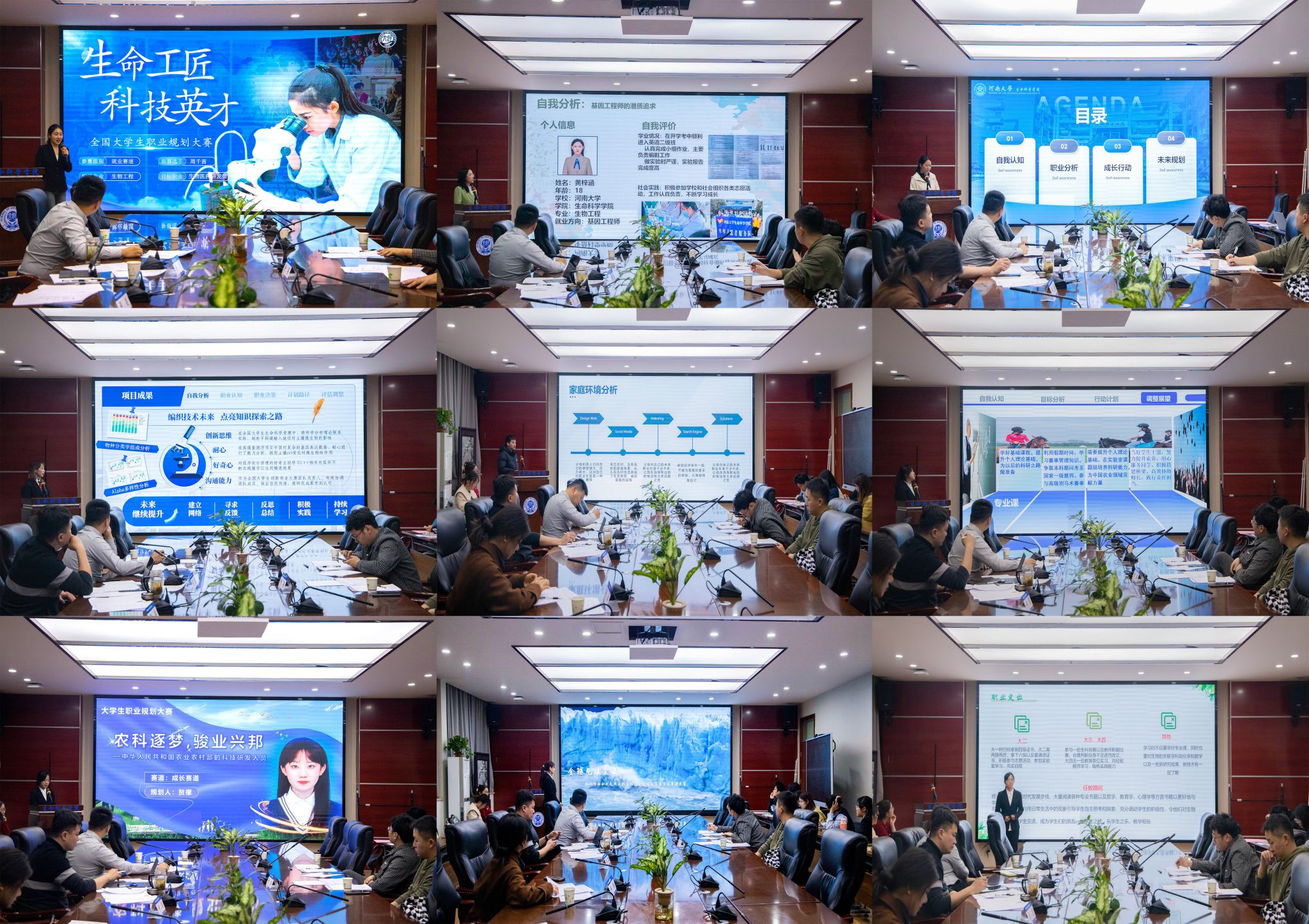36名成长赛道选手和12名就业赛道选手依次登台展示。同学们立足自身专业基础,结合兴趣志向,以清晰的逻辑、详实的数据全方位剖析自我,从个人分析、职业认知、发展规划与路径实施、评估调整等几个方面汇报自身成长与实践经历,展示职业规划和就业展望,突出了契合时代要求、发挥个人特长的职业目标。同学们“不驰于空想,不骛于虚声”,将个人理想与生活现实有机结合,有“钟情支教 燃烧青春”的基层中小学教师,“生命工匠 科技英才”的生物医药研究员,“农科逐梦 骏业兴邦”的马业科技研发人员,有对高新技术行业的向往,也有对传统行业的坚守,充分展现了学院大学生在职业规划方面的多元化思考。