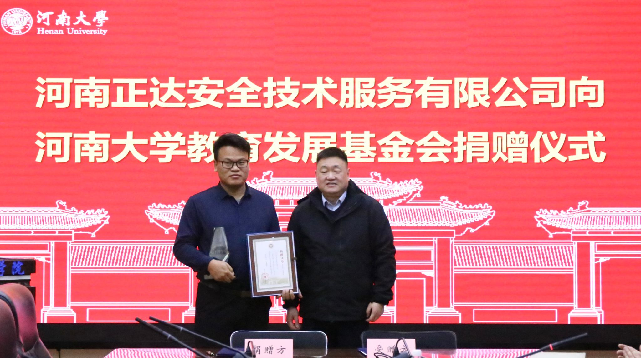 12月12号下午,河南正达安全技术服务公司向河南大学教育发展基金会捐赠仪式在生命科学学院B201会议室举行。河南正达安全技术服务公司总经理、生命科学学院2013届校友朱文涛、特聘顾问赵东海、事业部经理周瑞,河南大学副校长、生命科学学院院长张立新,河南大学教育发展基金会秘书长刘婷,生命科学学院执行院长王刚,副院长赵海鹏、李国勇及师生代表参加仪式。仪式由生命科学学院党委副书记宋永鹏主持。