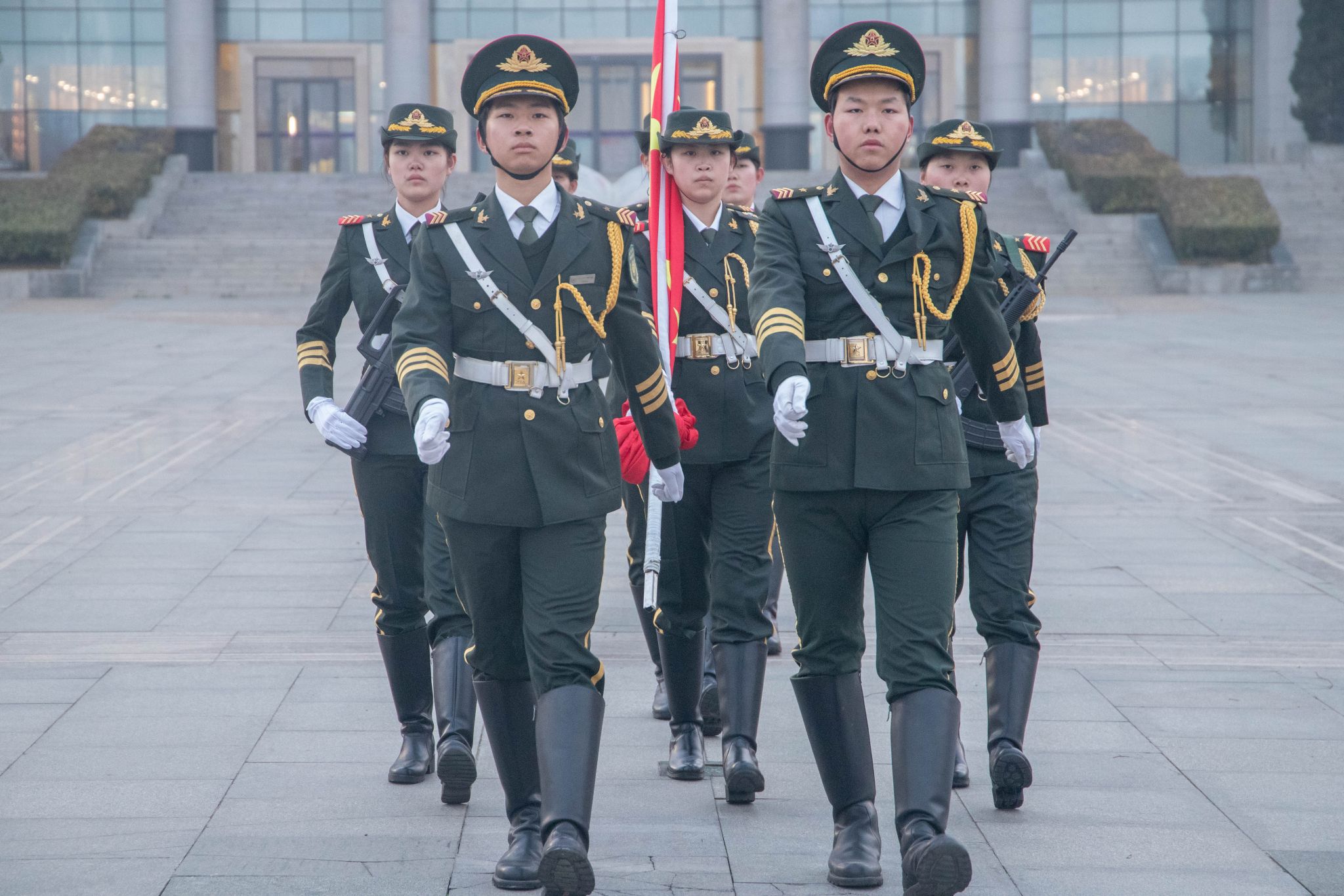 清晨,微风拂面,晨光熹微,全体学生整齐列队,肃立于金明校区明德广场。伴随着铿锵有力的脚步声,国旗护卫队迈着整齐的步伐,护卫着鲜艳的五星红旗,庄严地走向旗杆。当雄壮的《义勇军进行曲》响起,五星红旗在晨光的映照下冉冉升起,现场师生肃然起敬,面向国旗行注目礼,表达对祖国的崇高敬意和无限热爱。国旗在蓝天白云下迎风飘扬,象征着中华民族的伟大复兴与不屈精神,激励着每一位在场的人。