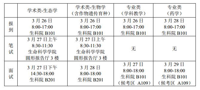 生态学面试时间:327日下午14:30-18:00,地点:生科院B201