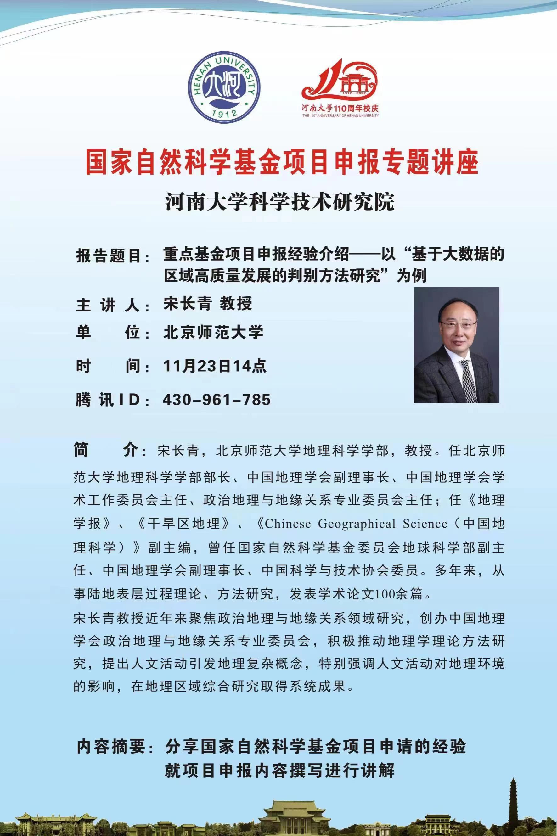 宋长青:重点基金项目申报经验介绍——以“基于大数据的区域高质量发展的判别方法研究”为例