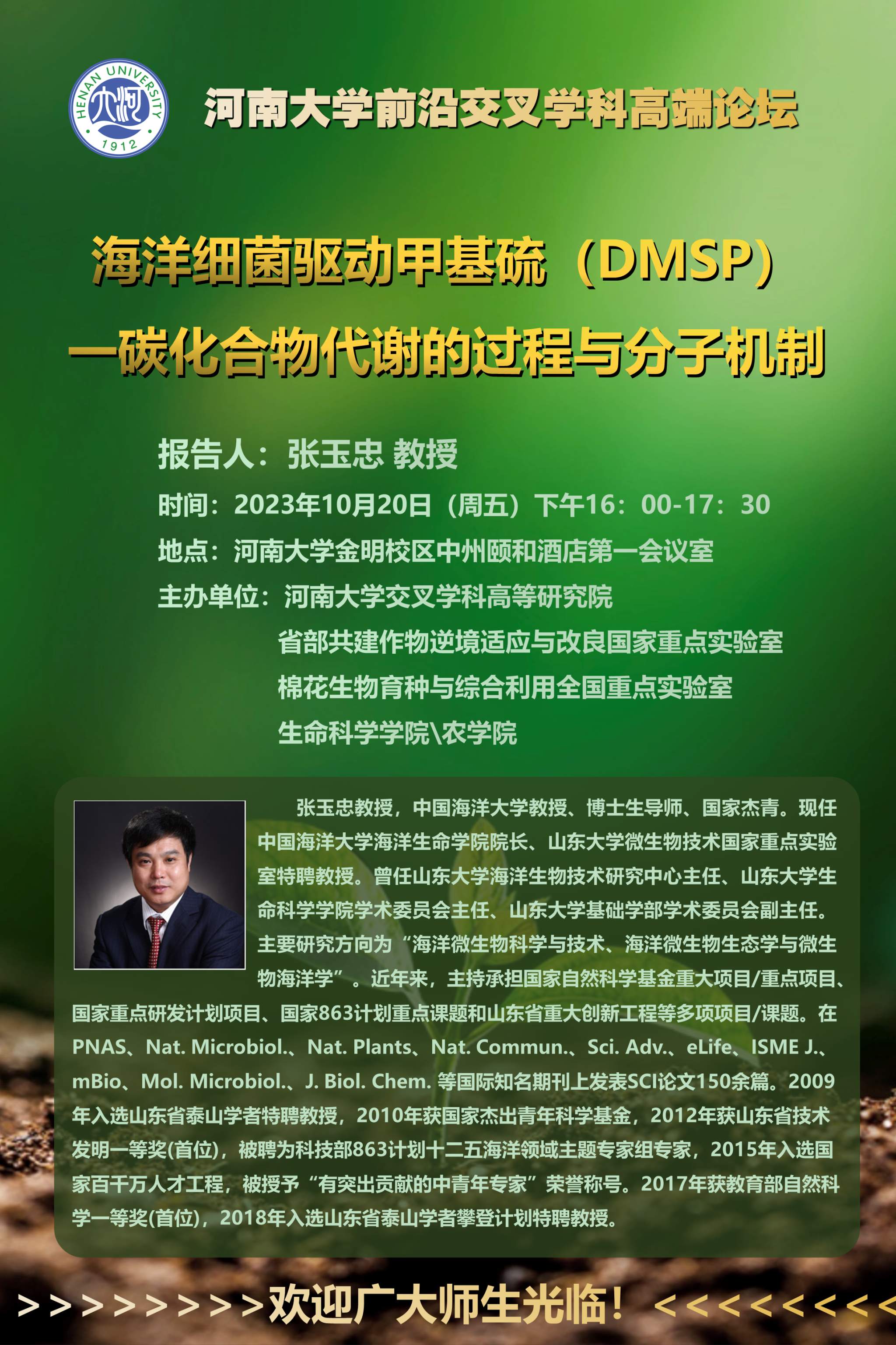 张玉忠:海洋细菌驱动甲基硫(DMSP)-碳化合物代谢的过程与分子机制
