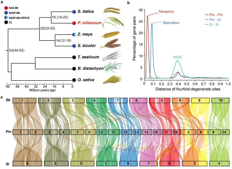 1月25日,国际学术期刊Nature communications在线发表了河南大学植物逆境生物学重点实验室和中国科学院上海植物逆境生物学研究中心合作完成的题为“The genome of broomcorn millet”的研究论文。该研究首次完成了糜子基因组精细图谱,通过比较基因组和转录组分析揭示糜子进化历程和其特殊的C4途径模型,将为科学家理解作物抗逆机理和抗逆育种提供帮助。