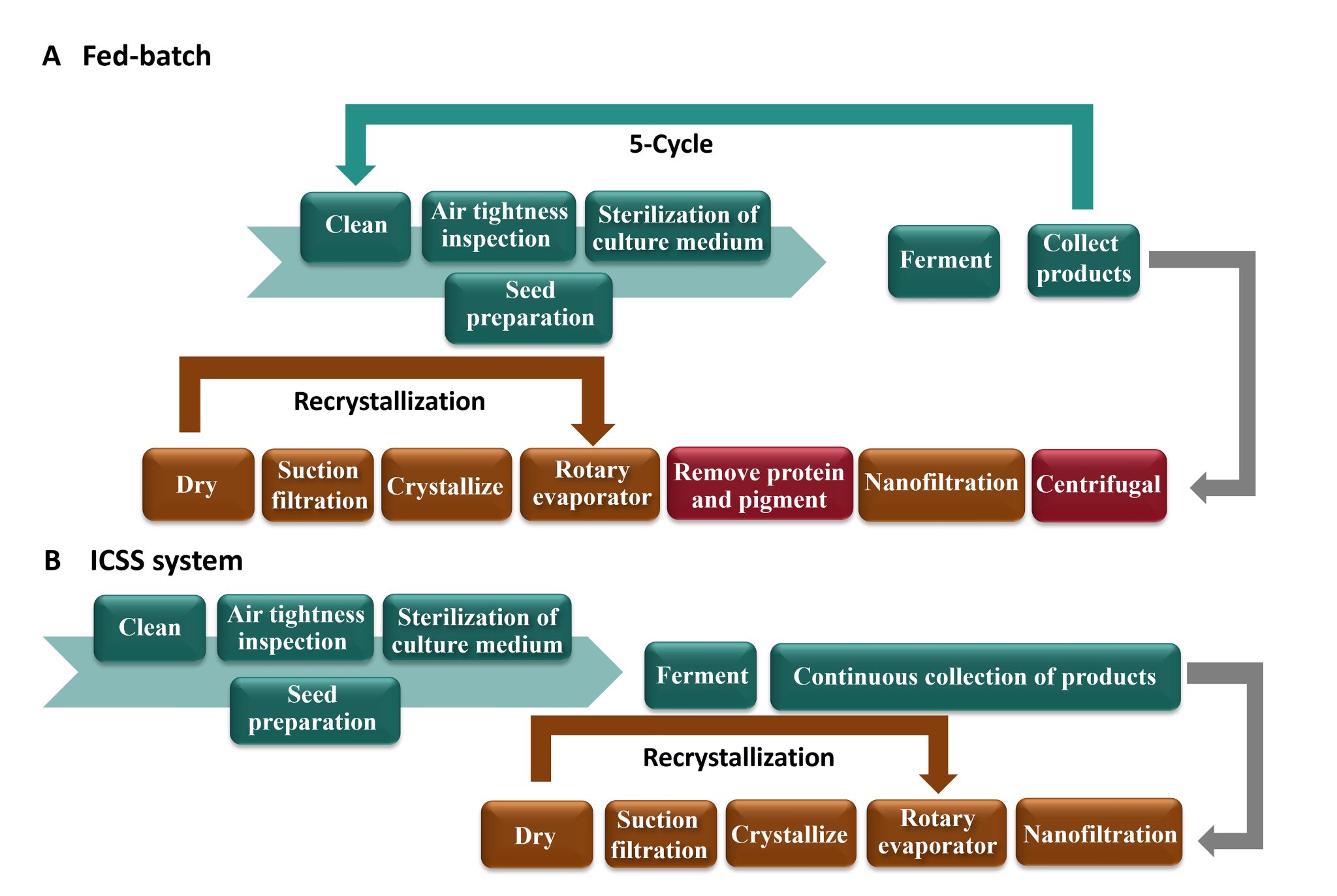 图2ICSS系统与传统补料分批发酵生产DHA工艺比较